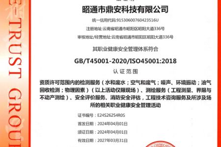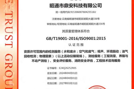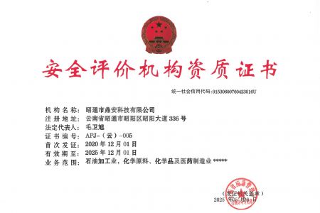 2003年11月10日,昭通市鼎安科技有限公司成立,初始主要從事第三方安全工程技術(shù)服務(wù),經(jīng)多年運(yùn)營,發(fā)展為多專業(yè)綜合科技平臺,為社會提供多種專業(yè)技術(shù)服務(wù)工作。 現(xiàn)公司注冊資金為1200萬元,公司法定代表人:毛衛(wèi)旭。公司主要業(yè)務(wù):安全評價、安全標(biāo)準(zhǔn)化評審、安全工程技術(shù)服務(wù);環(huán)境監(jiān)測、職業(yè)衛(wèi)生檢測、檢驗;法律訴訟及非訴訟服務(wù);司法鑒定、固定資產(chǎn)投資項目節(jié)能服務(wù);工程咨詢;工程測量測繪;安全教育培訓(xùn)等。是安全生產(chǎn)服務(wù)、安全教育培訓(xùn)機(jī)構(gòu),也是環(huán)境監(jiān)測和職業(yè)衛(wèi)生服務(wù)機(jī)構(gòu),同時也是綜合的檢測檢驗、綜合科技平臺服務(wù)機(jī)構(gòu)。多年來為公、檢、法、司、軍、警、海關(guān)、仲裁、安監(jiān)、工礦商貿(mào)企業(yè)、社會團(tuán)體及個人提供多專業(yè)技術(shù)服務(wù)。